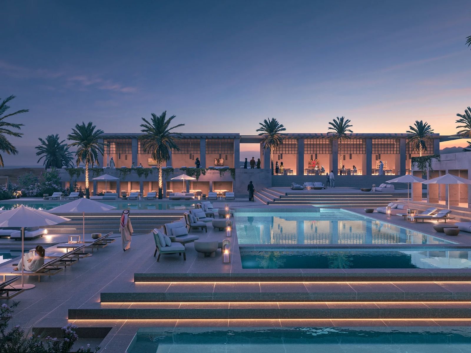 Aman’s Saudi story currently centers on two distinct destinations with very different settings. Aman Hegra sits in AlUla at Hegra, the Kingdom’s first UNESCO World Heritage Site, and the project has been announced as a 42-key hotel with 30 branded residences across an eight-million-square-meter area. The proposition aligns with AlUla’s archaeological scale and desert stillness, with Aman’s usual focus on privacy, low-density design, and an experience built around place, light, and quiet pacing.