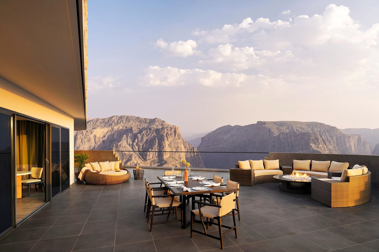 Perched high on the Saiq Plateau, this resort redefines serene luxury through altitude and silence. The setting above Oman’s dramatic canyon edges creates emotional distance from urban rhythm. Rooms, terraces, and the spa all frame panoramic views that shift with light and cloud, providing a backdrop for slow mornings and restorative evenings. Wellness here integrates heat, water, and quiet, and the overall feel is one of thoughtful presence rather than spectacle.