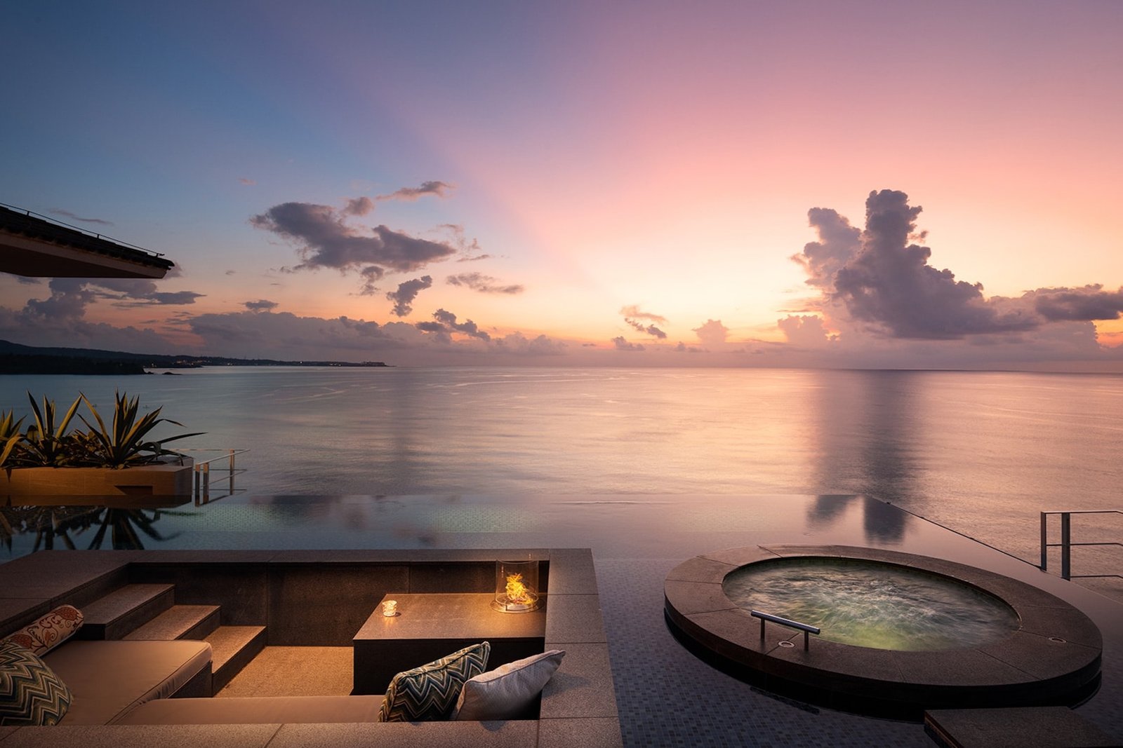 The architecture of the resort carries the same intention: light, air, water and horizon line are constantly in dialogue. Interiors are built around soft geometry and a palette of “seven shades of white”, allowing the blues and greens of the landscape to take centre stage. Terraces, walkways and open vistas encourage a slower pace almost by design.