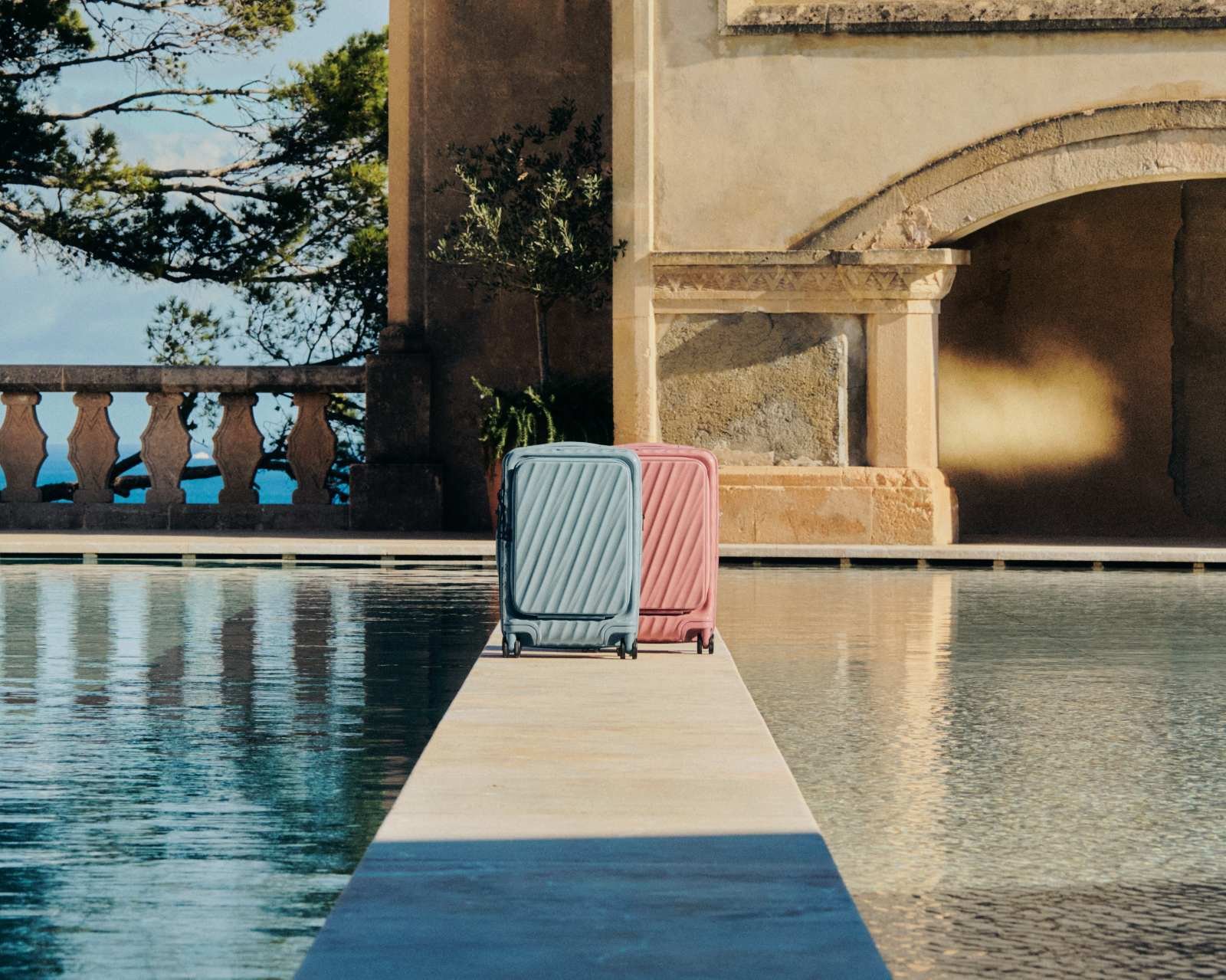 Shot in Mallorca at Villa Fortaleza and Cala San Vicente, the campaign was directed by Piero Bressan and photographed by Dario Catellani. The setting matters here. TUMI uses it to move away from the familiar language of efficiency alone and toward a more emotional idea of travel – one shaped by light, landscape, rhythm and the pleasure of being fully inside a destination.